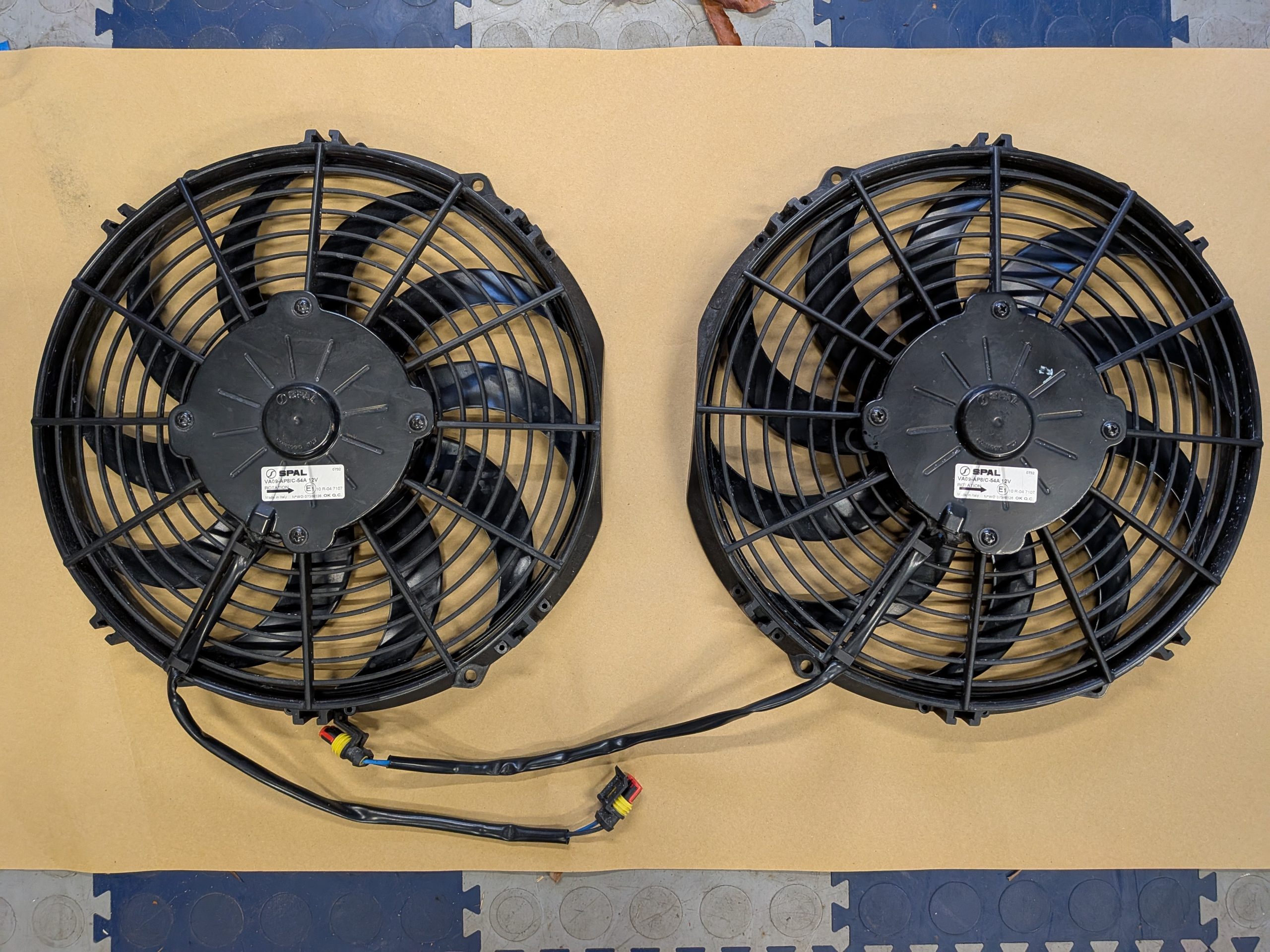 I have for sale a pair of used Spal 11 inch pull fans. These have had the connectors changed from original and have been fitted to my car for 5 years. They are in perfect condition.
